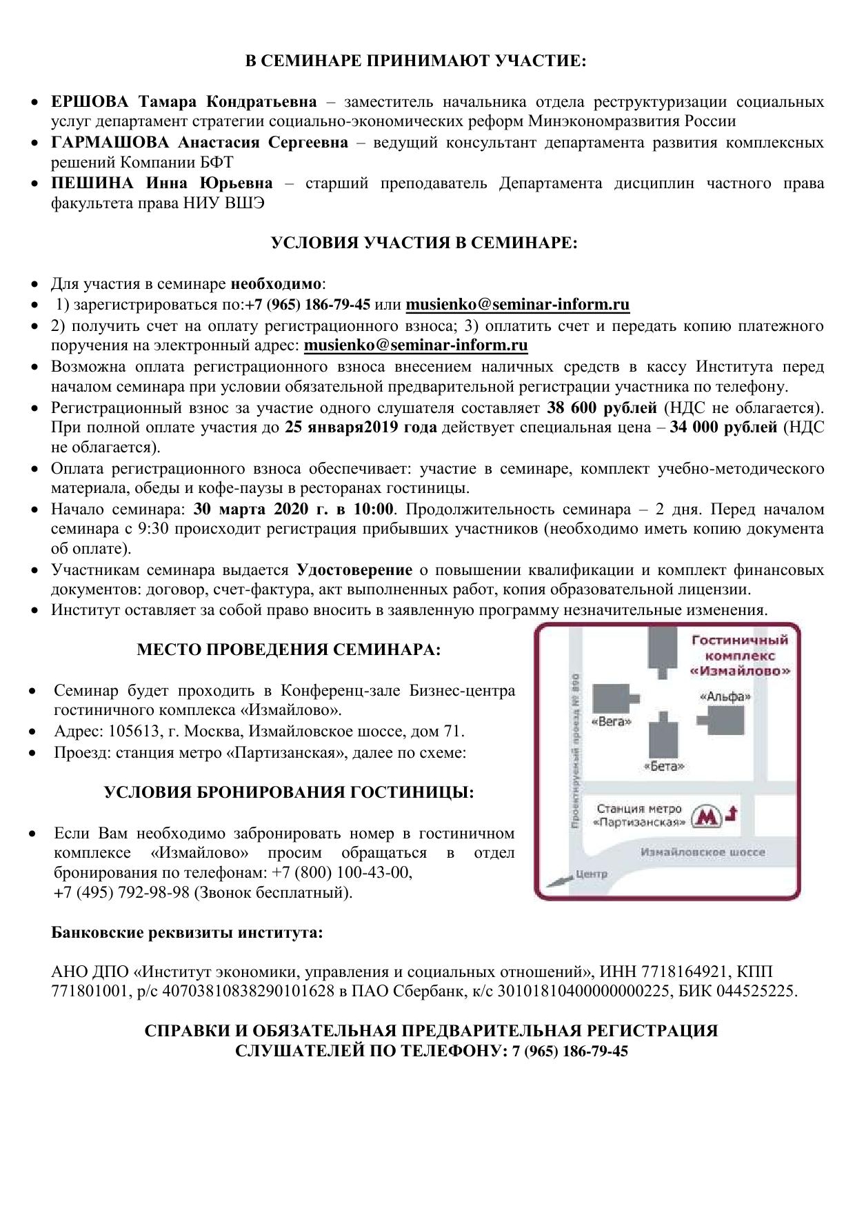 В качестве спикеров на семинаре выступят представители департамента стратегии и социально-экономически реформ Минэкономразвития России, ведущие сотрудники факультета права НИУ «Высшая школа экономики», представители департамента развития комплексных решений Компании БФТ.