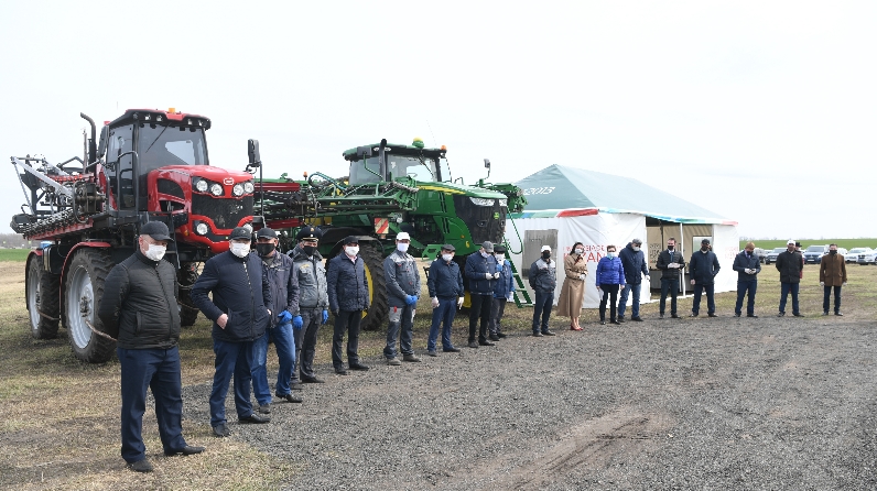 Встреча с активом аграрного комплекса района состоялась на поле рядом с селом Старая Хурада. Глава Алькеевского района Александр Никошин сообщил, что общая площадь сельхозугодий в районе составляет 114,8 тыс.га, в т.ч. пашни – 98,3 тыс.га. Яровыми культурами планируется засеять 49 тыс. га. Под озимые выделено 20 тыс. га. На сегодня полностью завершена подкормка озимых культур. Боронование зяби и пара выполнено на площади 30,3 тыс.га, что составляет 50%.