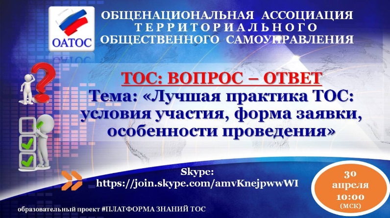 30 апреля 2020 года в 10.00(время московское)состоится видео - семинар «ТОС: вопрос - ответ».