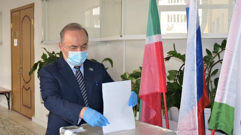 Председатель Ассоциации «Совет муниципальных образований РТ» Экзам Губайдуллин сегодня принял участие в голосовании по поправкам к Конституции Российской Федерации. Он посетил 65-юу участковую избирательную комисию, которая расположена в здании казанской Гимназии №96.