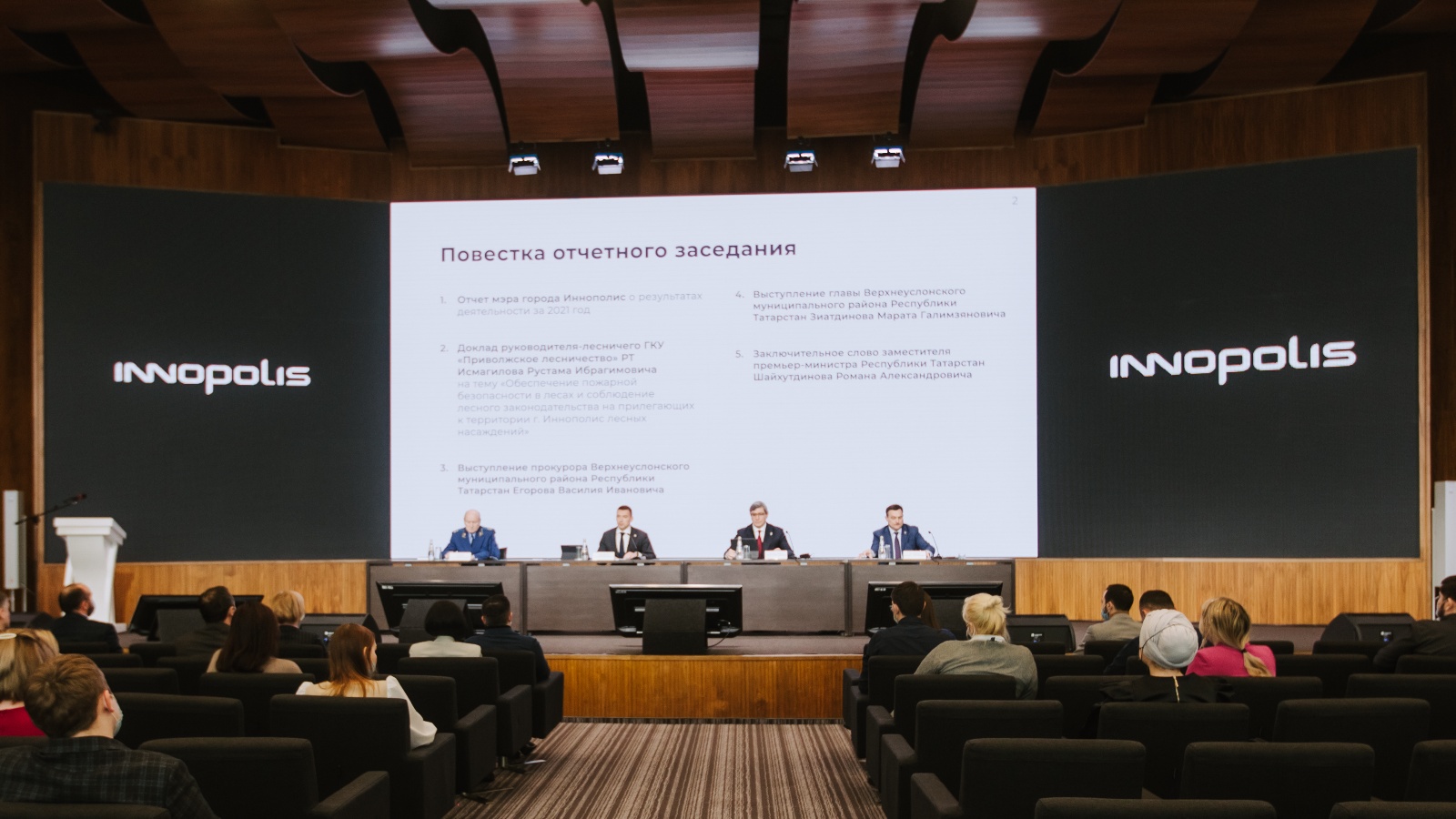 В технопарке им. А.С. Попова прошло отчетное заседание Совета города Иннополис за 2021 год. В работе приняли участие заместитель Премьер-министра Республики Татарстан Роман Шайхутдинов, глава Верхнеуслонского муниципального района РТ Марат Зиатдинов и другие.