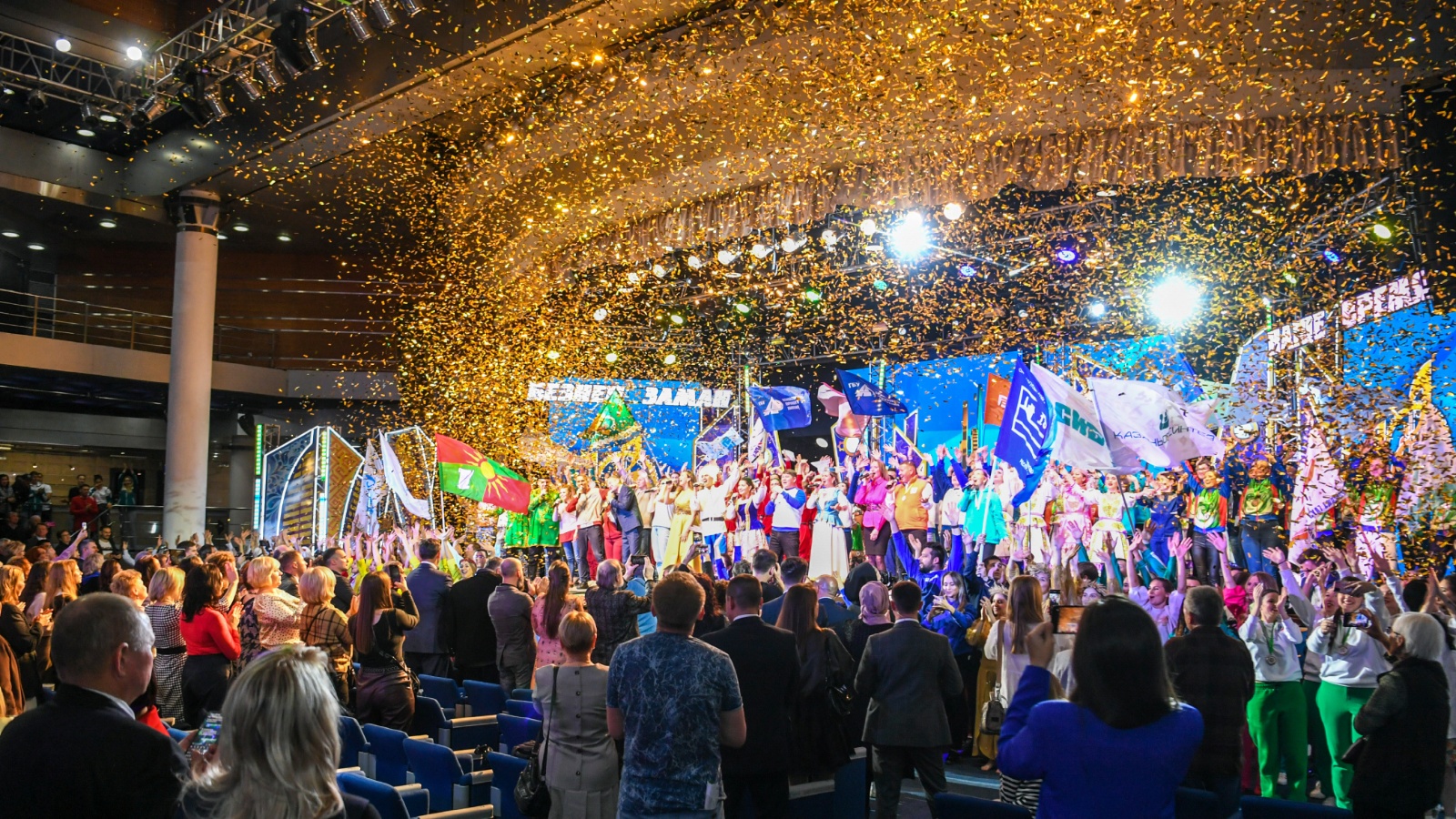 В Казани состоялся гала-концерт X ежегодного открытого республиканского телевизионного фестиваля творчества работающей молодежи «Наше время – Безнең Заман». В мероприятии приняли участие Президент Республики Татарстан Рустам Минниханов, председатель Ассоциации «Совет муниципальных образований Республики Татарстан» Экзам Губайдуллин и другие.