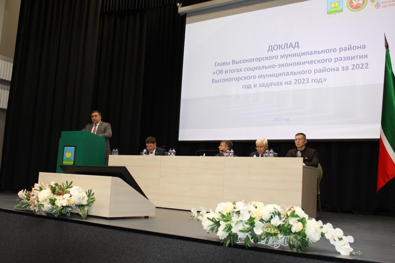 Далее состоялось ХХХII заседание Совета Высокогорского района. Глава района Равиль Хисамутдинов доложил об итогах развития района за 2022 год и планах на 2023 год. В рейтинге социально-экономического развития муниципальных образований Республики Татарстан Высокогорский район по итогам 2022 года занял 16 место, поднявшись на 4 позиции.
