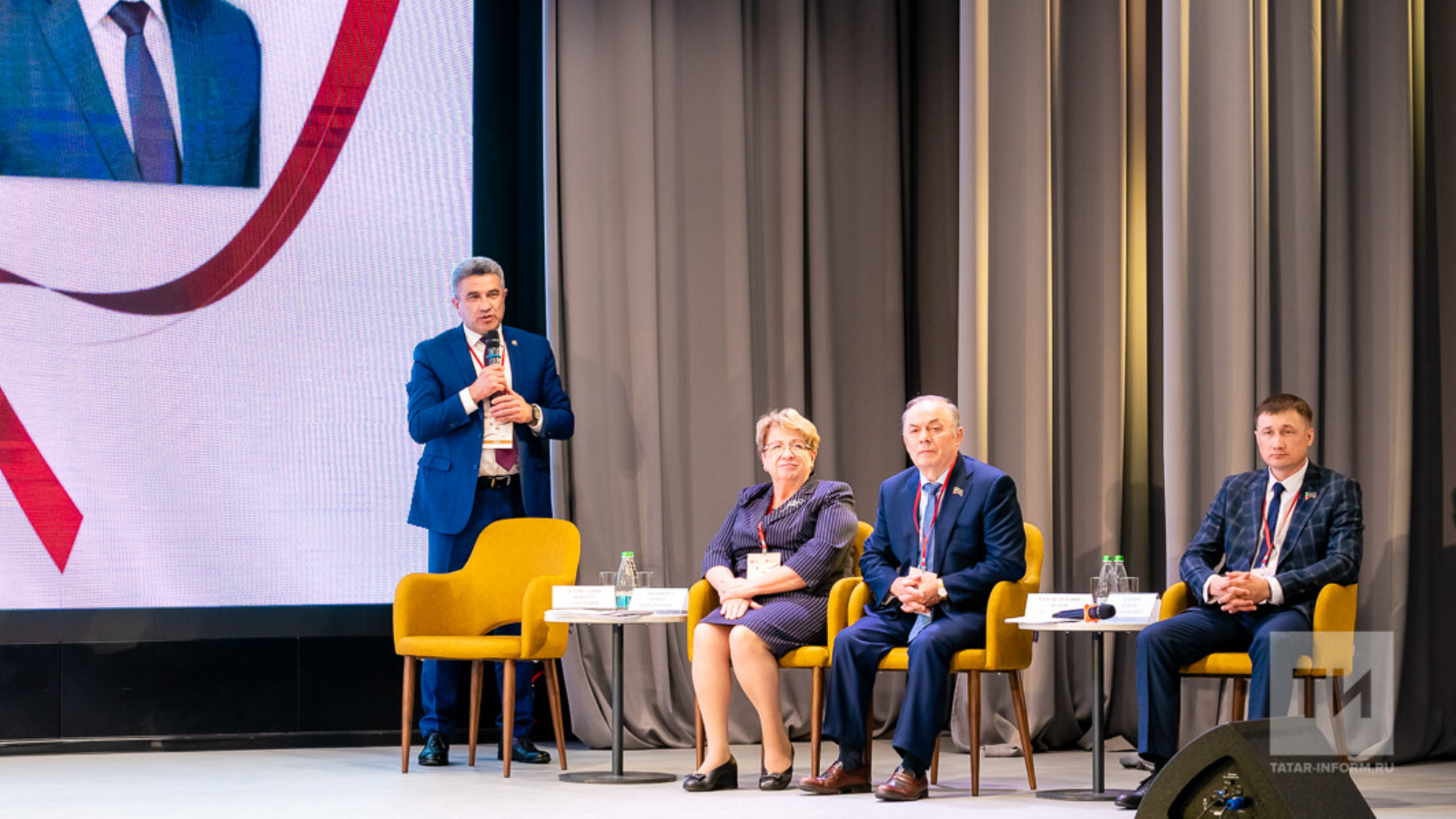 В мероприятии приняли участие председатель Комиссии при Раисе РТ по вопросам сохранения, развития татарского языка и родных языков представителей народов, проживающих в РТ Марат Ахметов, министр образования и науки Ильсур Хадиуллин, председатель Совета муниципальных образований РТ Экзам Губайдуллин и др.