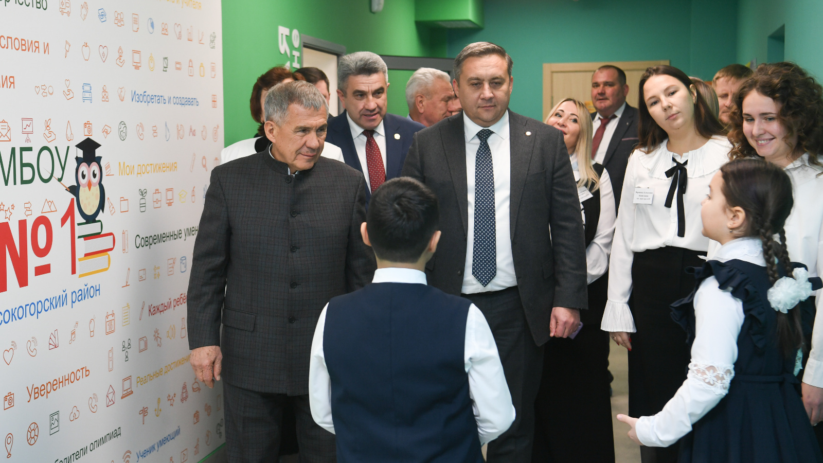 В рамках рабочей поездки в село Высокая Гора Раис Татарстана Рустам Минниханов посетил второе здание школы №1 после капитального ремонта.