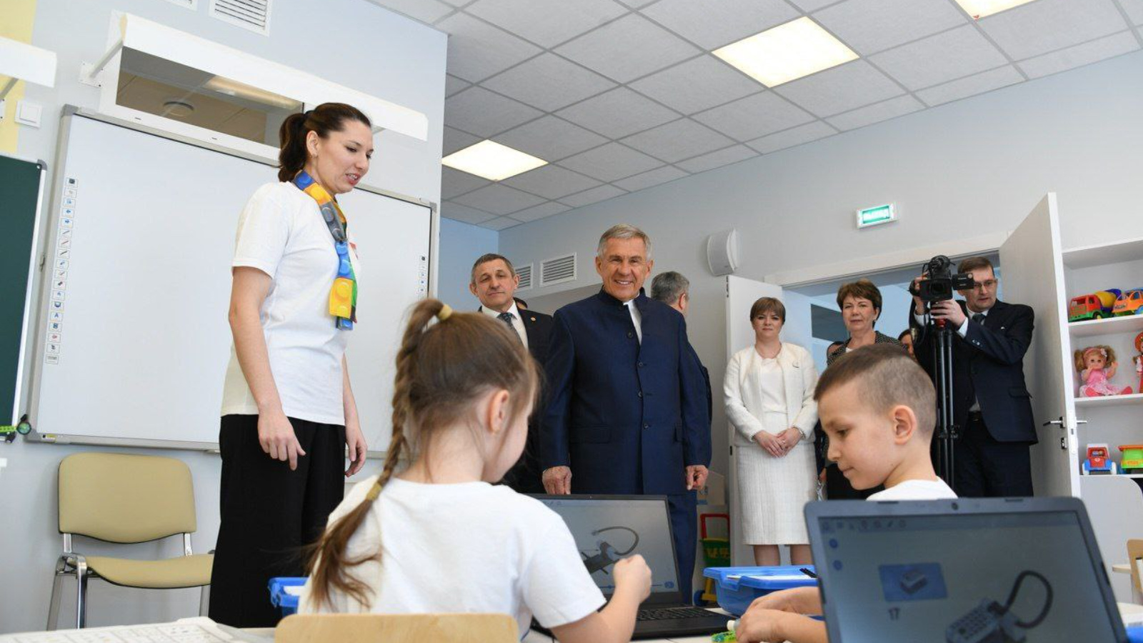 Рустама Минниханова сопровождали глава Лаишевского муниципального района Ильдус Зарипов, министр образования и науки РТ Ильсур Хадиуллин, первый заместитель руководителя Администрации Раиса РТ - начальник Управления по работе с территориями Ильнур Гарипов.